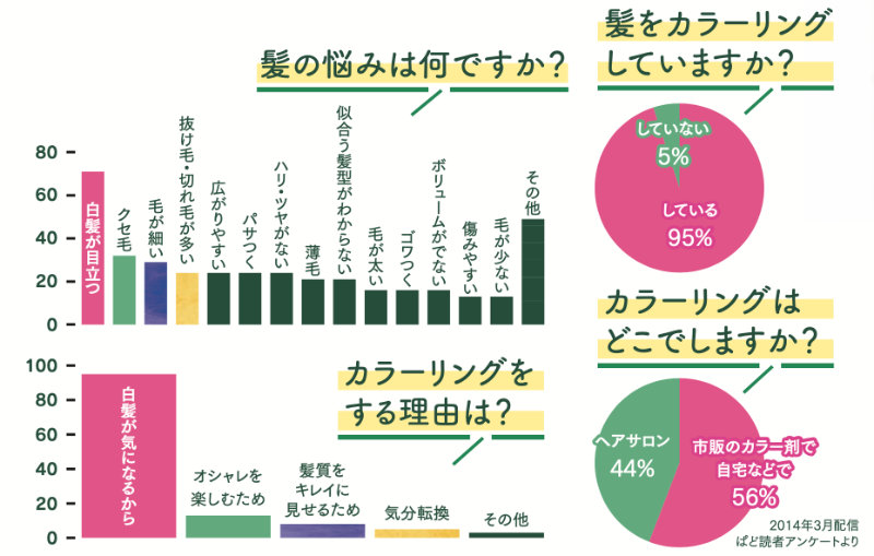 ぱど読者によると、50代以上の女性の9割以上はヘアカラーをしており、その理由はやはり白髪が気になるため。