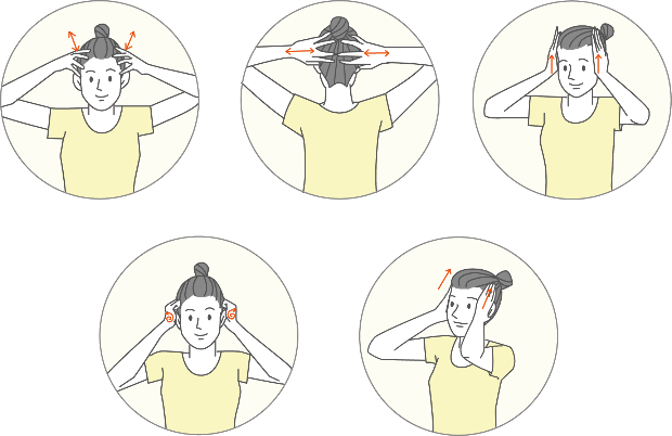 頭皮を下から頭のてっぺんへ向かって持ち上げるように動かすお風呂に入っているときや、お風呂あがりは、皮膚がやわらかくなります。その際に、下へ引っぱられた頭皮を頭頂部へ戻すように動かし、やさしくほぐしていきましょう。シャンプーのついでに行ってもいいでしょう。
