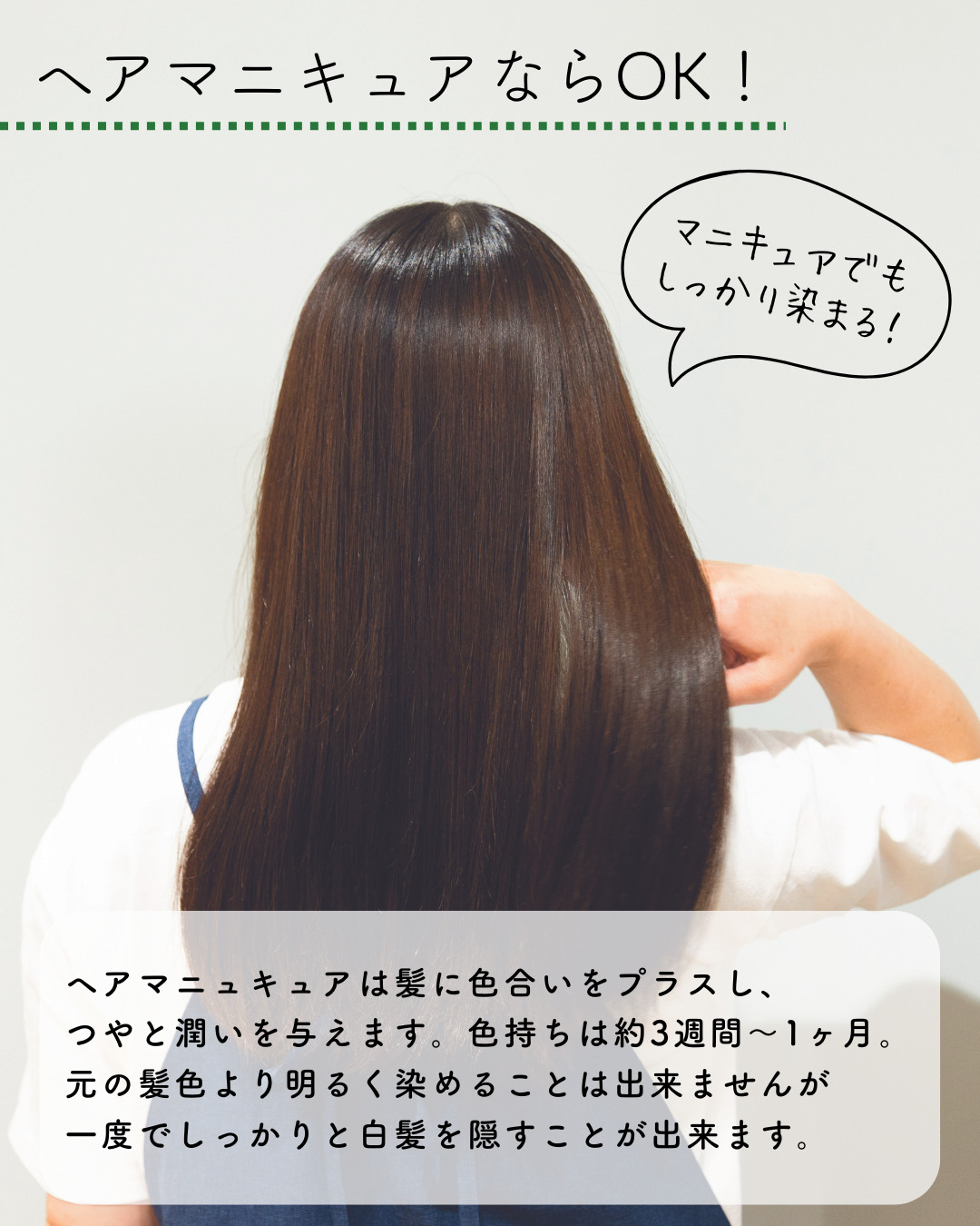 ヘアマニキュアはアレルギーの方でもご使用いただけるので、安心してください💕