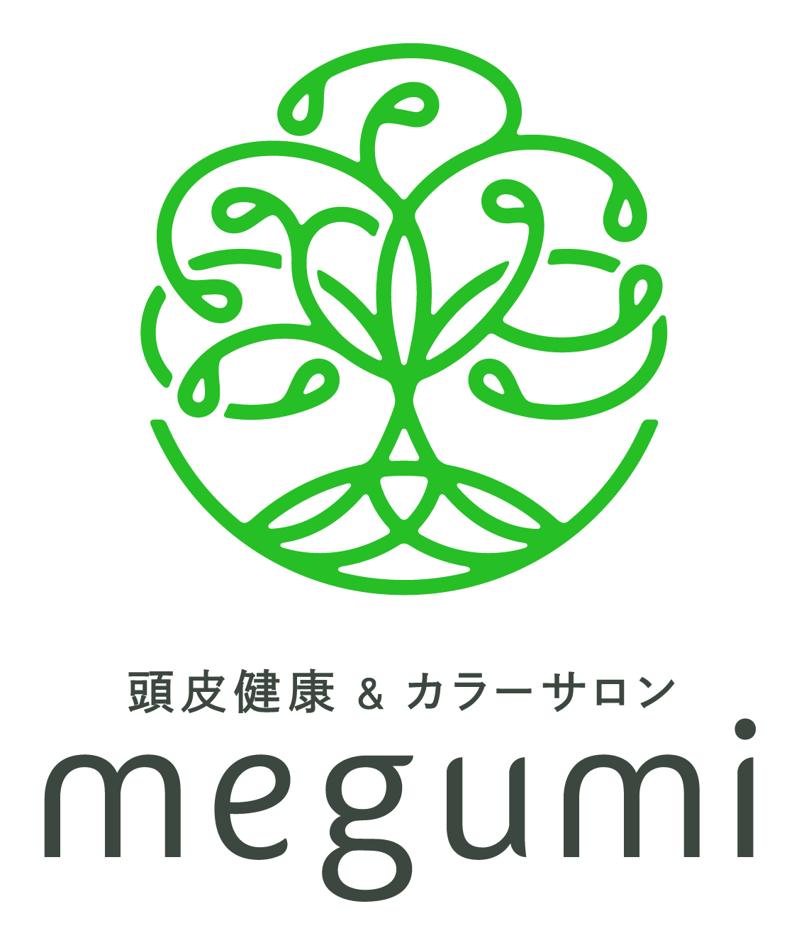 そんな想いをお店のロゴに込めました。もしよろしければ、頭⽪健康&カラーサロンmegumiのロゴをじっと⾒てください。