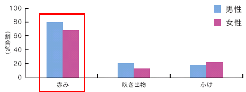 なんと!?性別問わず 約80%近い方々が頭皮の赤みを持っています!